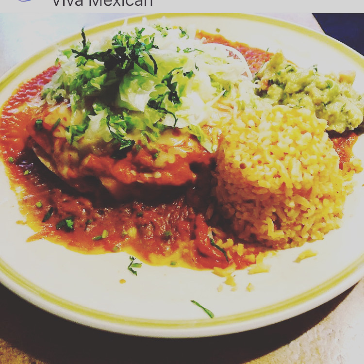 Traditional and cheesy chili relleno, topped with our salsa verde, with a side of refried beans, Spanish rice, lettuce, guacamole, and sour cream